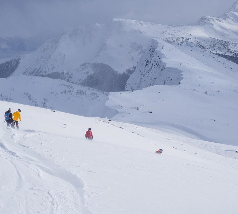 Marzo en Rogers Pass: 300cm de base, nevadas frescas hasta abril, 12+ horas de luz. El snowpack se estabiliza abriendo terreno alpino y glaciares. Champagne powder a -4.7°C de media. Alpine bowls, glaciares, glades, burnt trees y los miticos pillows.